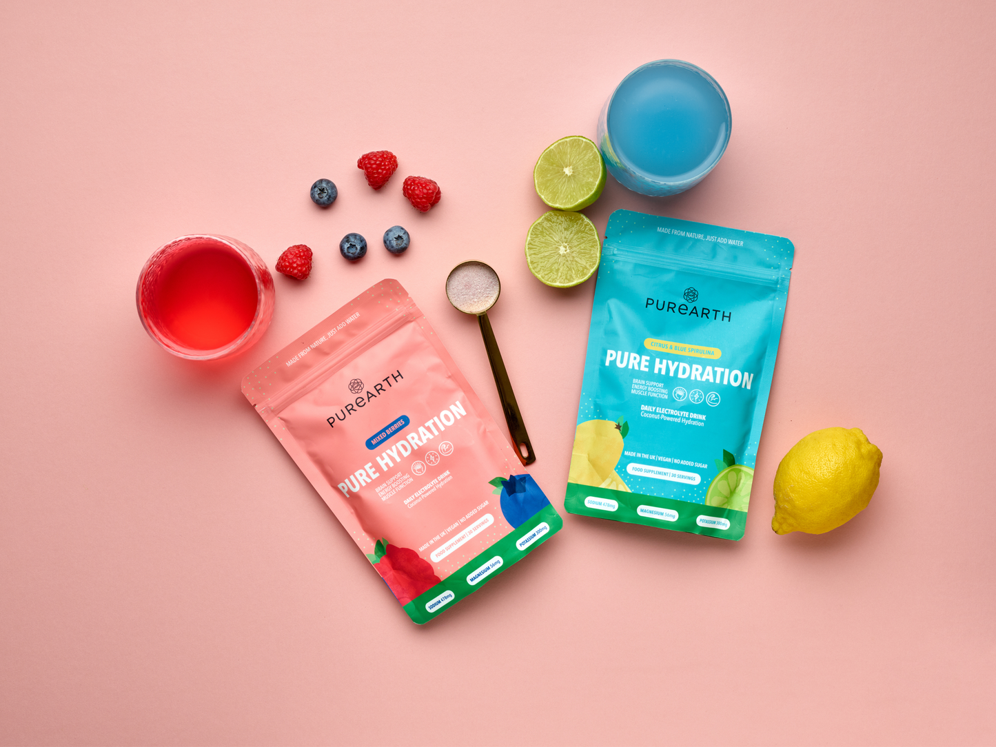 The Hydration Duo Bundle brings together both Pure Hydration flavours - Citrus & Blue Spirulina and Mixed Berries - for clean, effective hydration every day.